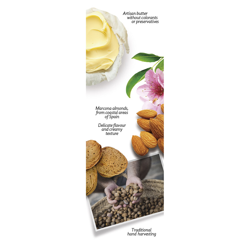 Deliciosas tostas crocantes com amêndoas Marcona e manteiga artesanal. Um sabor suave que realça qualquer tipo de queijo.