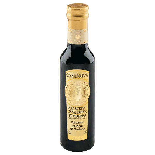 O Vinagre Balsâmico P Modena 2 Travasi é um clássico da CASANOVA. Feito de mosto cozido e concentrado de uvas Trebbiano e Lambrusco, envelhecido em barris de madeira e vinagre de vinho durante 2 anos.