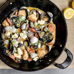 Almôndegas com Amêijoas, Chouriço e Lulas