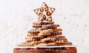 - Quando retirar as bolachas do forno, coloque-as numa rede e deixe que arrefeçam por completo. Decore-as com o glacé. Deixe secar e monte a árvore de Natal, sobrepondo as bolachas.
