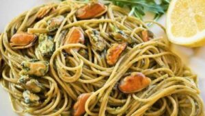 10. Junte o creme de lulas e mexilhão ao esparguete e cobra com o cebolinho picado.