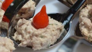 Uma entrada simples, mas original: atum com maionese e ervas, enaltecida com gotas de picante!