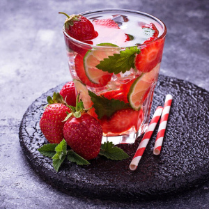 A sutil aliança entre o sabor inebriante dos morangos, o caráter picante do limão e o frescor da menta. Impressione seus convidados com este coquetel inovador e fácil de fazer! Uma bebida 100% verão, 100% refrescante e 100% frutada.